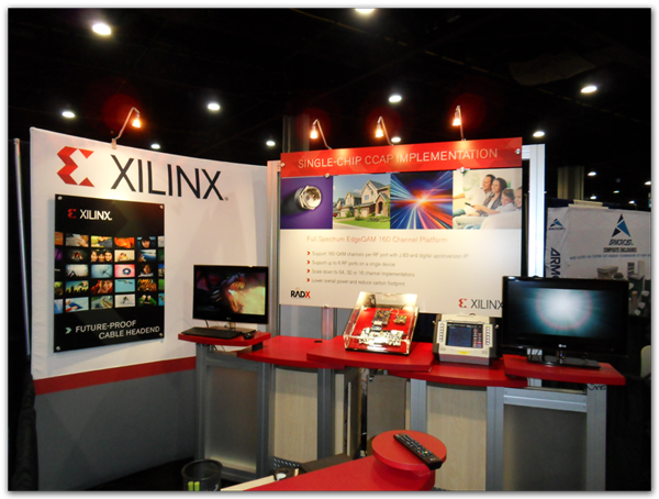 RADX and Xilinx Edge QAM Tech Demo at SCTE 2011-- First complete Edge QAM "on a chip" solutions that provide up to hundreds of Edge QAM Channels over multiple RF Ports using Xilinx 28 nm 7-Series FPGAs and RADX Edge QAM IP Core Set.